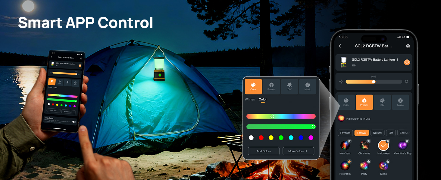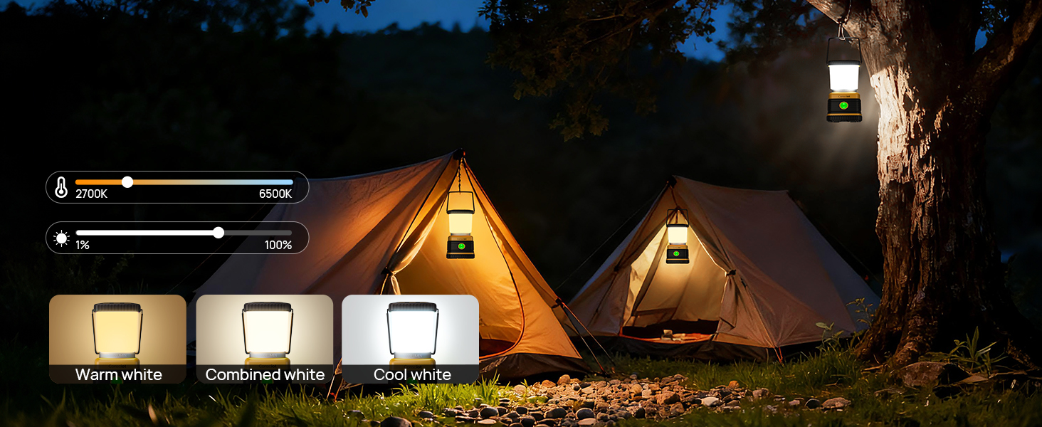 - 【Smart RGBTW Lantern with App Control】 - Unlock limitless ambiance with 16 million vibrant colors, tunable white light from warm 2700K to crisp 6500K, precision dimming from 1% to 100% brightness, and real-time battery level monitoring — all at your fingertips. Whether you're setting a romantic mood or lighting up a campsite, full control is effortless: use the intuitive mobile app for quick, convenient adjustments